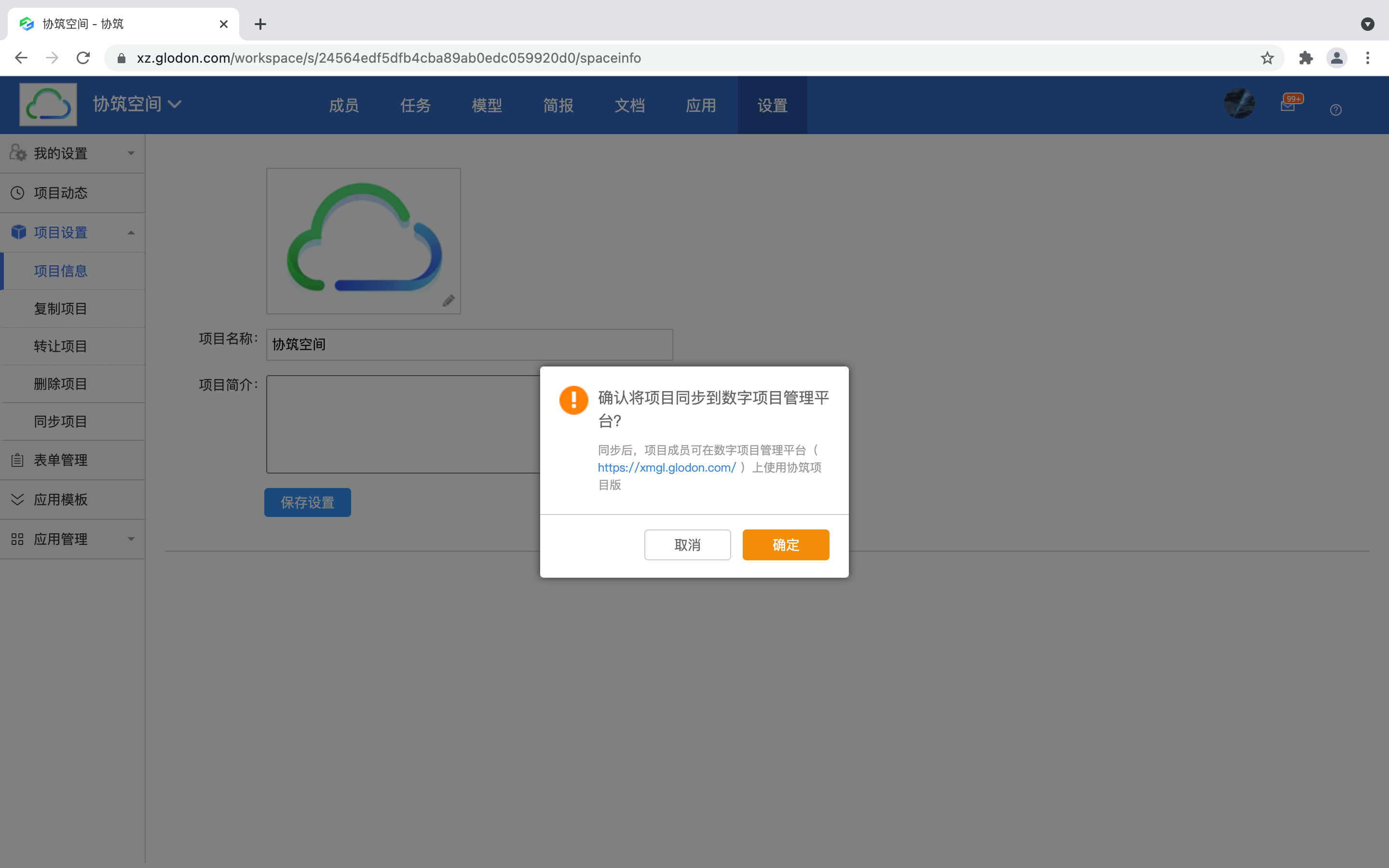9月7日,协筑网页端,支持将协筑项目同步到数字项目管理平台。